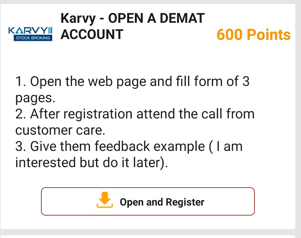 OFFER NAME KARVY OPEN DEMAT ACCOUNT
